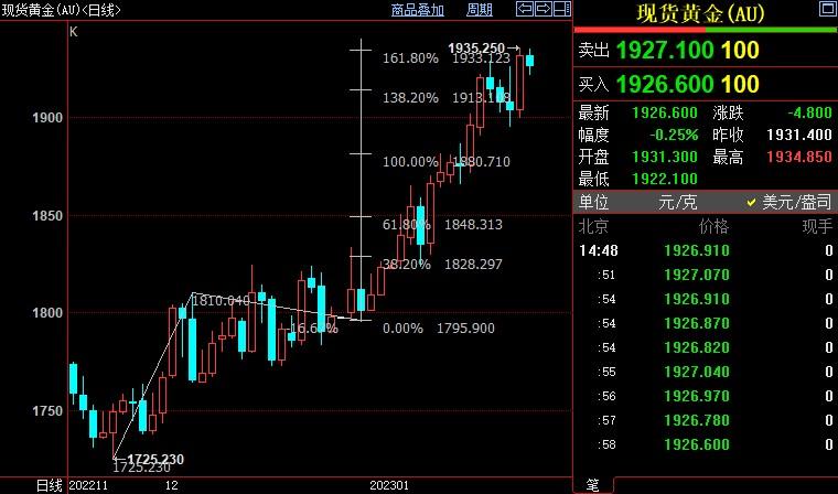 汇通财经APP讯——周五(1月20日),国际金价伴随着美元走强而下跌,但有望连续第五周上涨,因为美联储加息节奏放缓预期提振了黄金的吸引力。金价后市上看1946美元。
