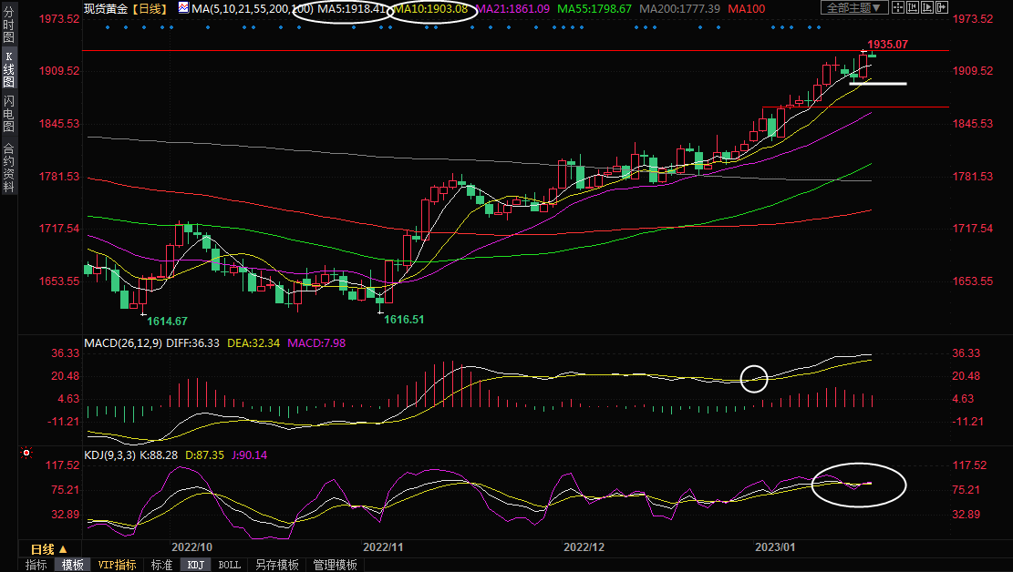 现货黄金震荡微跌,目前交投于1928.63美元/盎司附近,美元走软和美国加息放缓的希望提高避险黄金的吸引力,隔夜金价大涨近30美元,周线有望录得五连阳,虽然短线有一些技术面回调需求,但多头士气依然高昂,在美联储2月份利率决议前,金价大概率偏向震荡上行或者高位震荡,一些分析师预计金价中线有望涨向2000关口上方。