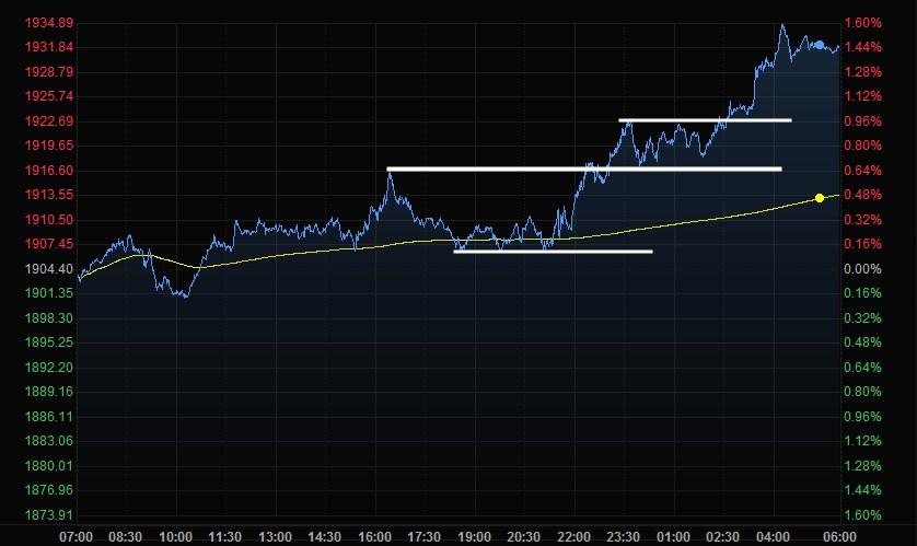 分时图来看,金价在1923.5、1916.5和1906.5附近分别存在一些支撑。