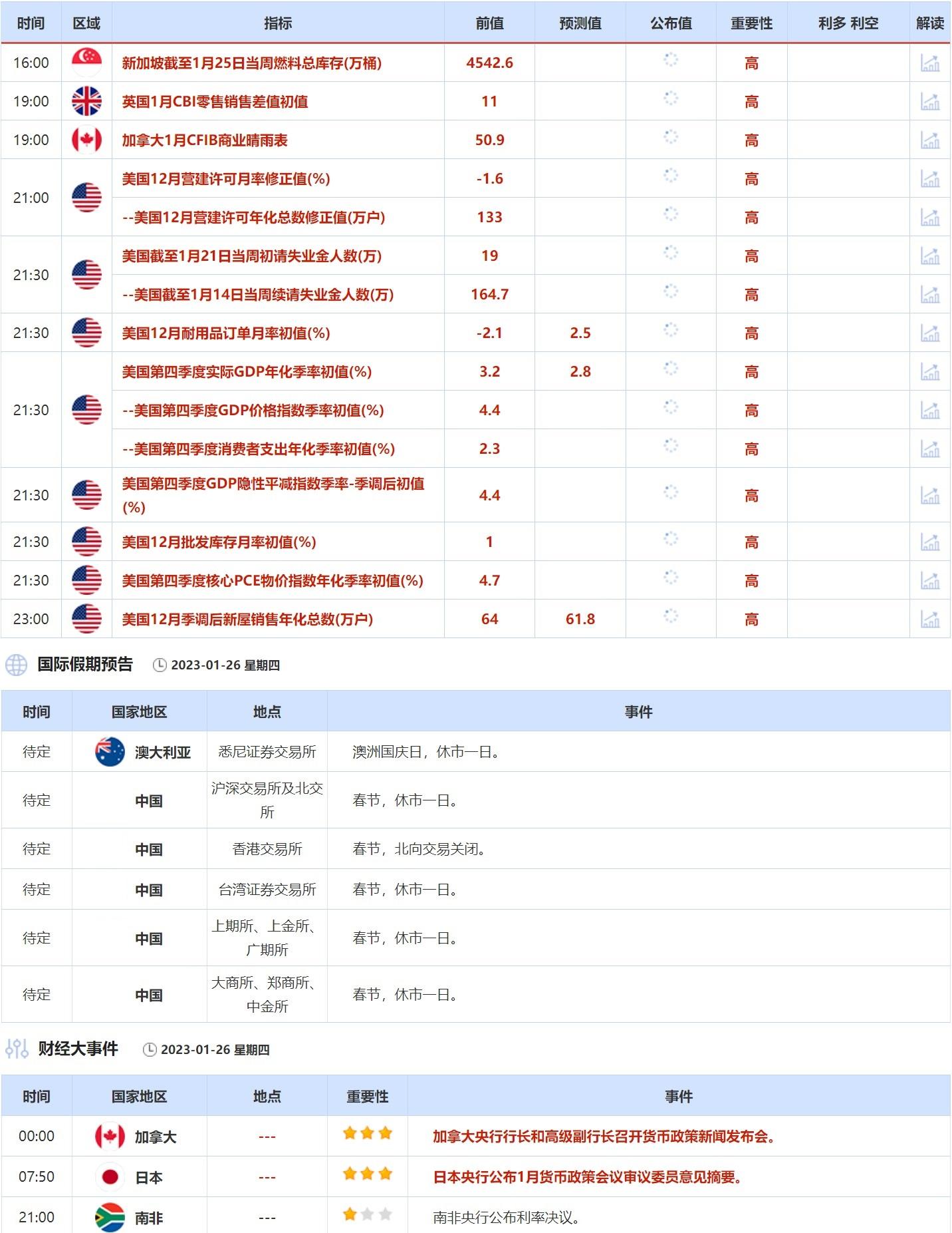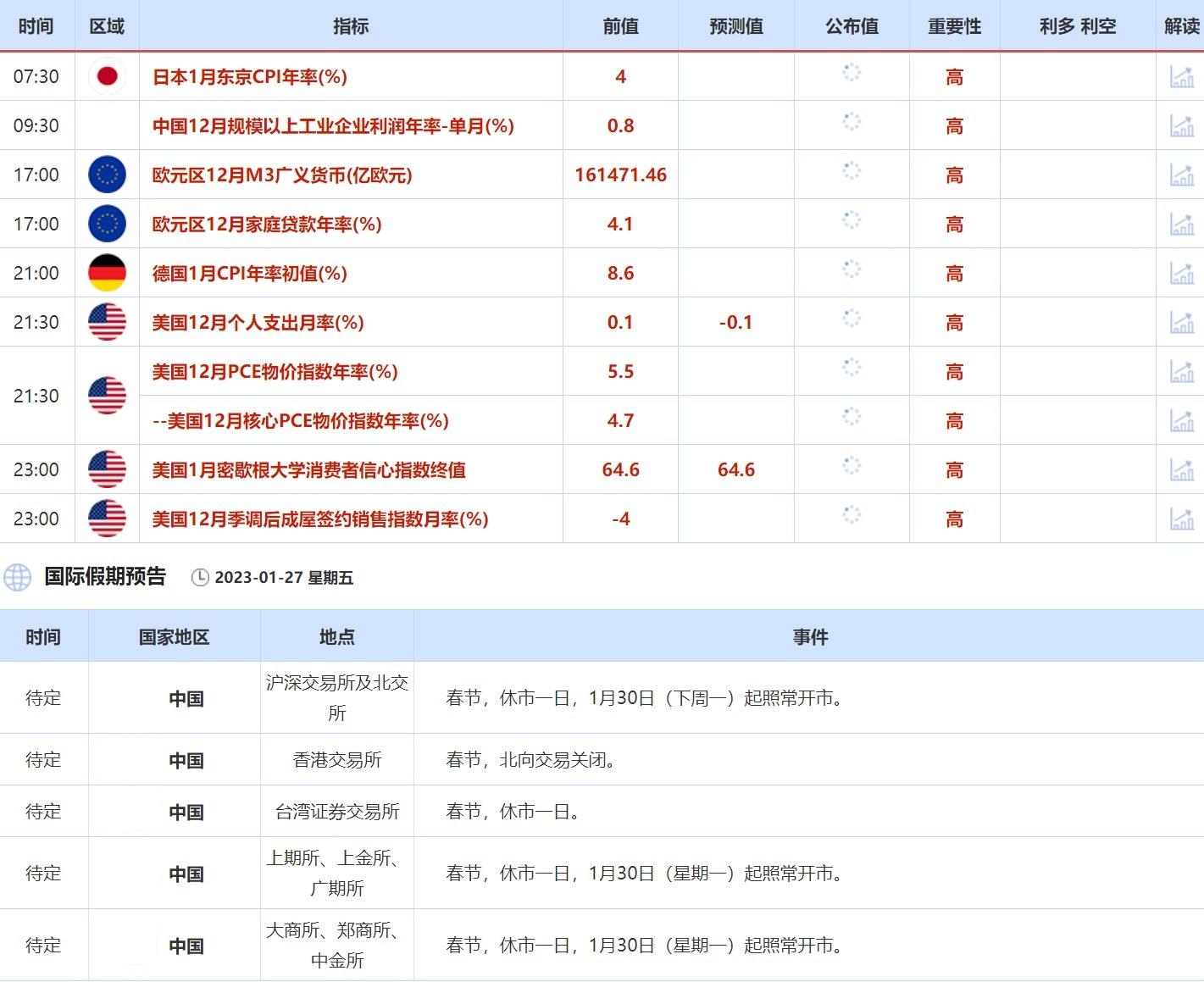 1月26日当天,加拿大央行行长和高级副行长召开货币政策新闻发布会。此外,日本央行公布1月货币政策会议审议委员意见摘要。这两件大事也许引起投资者重视。⑤1月27日(周五)关键字:日本1月CPI