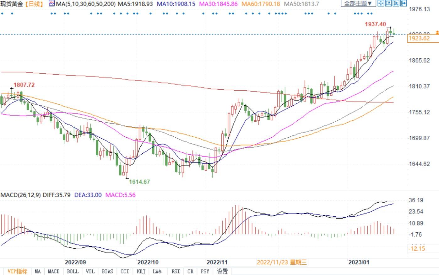 汇通财经APP讯——黄金市场已经连续五周上涨,2023年第一个月的价格涨幅超过5%。美国银行预计,未来三年黄金将成为一种主要资产。经济学家David Rosenberg预测,美联储将在下半年某个时间降息,2023年金价有望突破2000美元,创下新高。