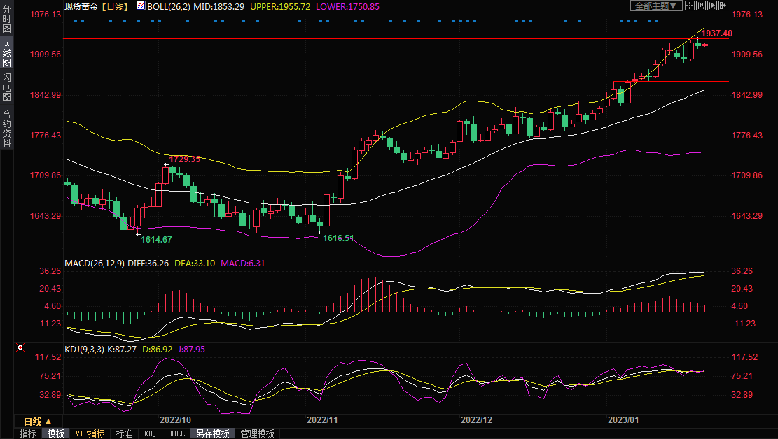 现货黄金震荡微涨,目前交投于1929.50美元/盎司附近。上周五金价高位震荡后小幅回落,因为美联储官员持续发表鹰派讲话,帮助美债收益率反弹,再加上部分多头获利了结,金价收报1926.5美元/盎司附近;不过,美国通胀增速放缓后,美国房地产数据表现较差,继续拖累美元表现,市场仍普遍预期美联储将放缓加息步伐,给金价提供支撑。