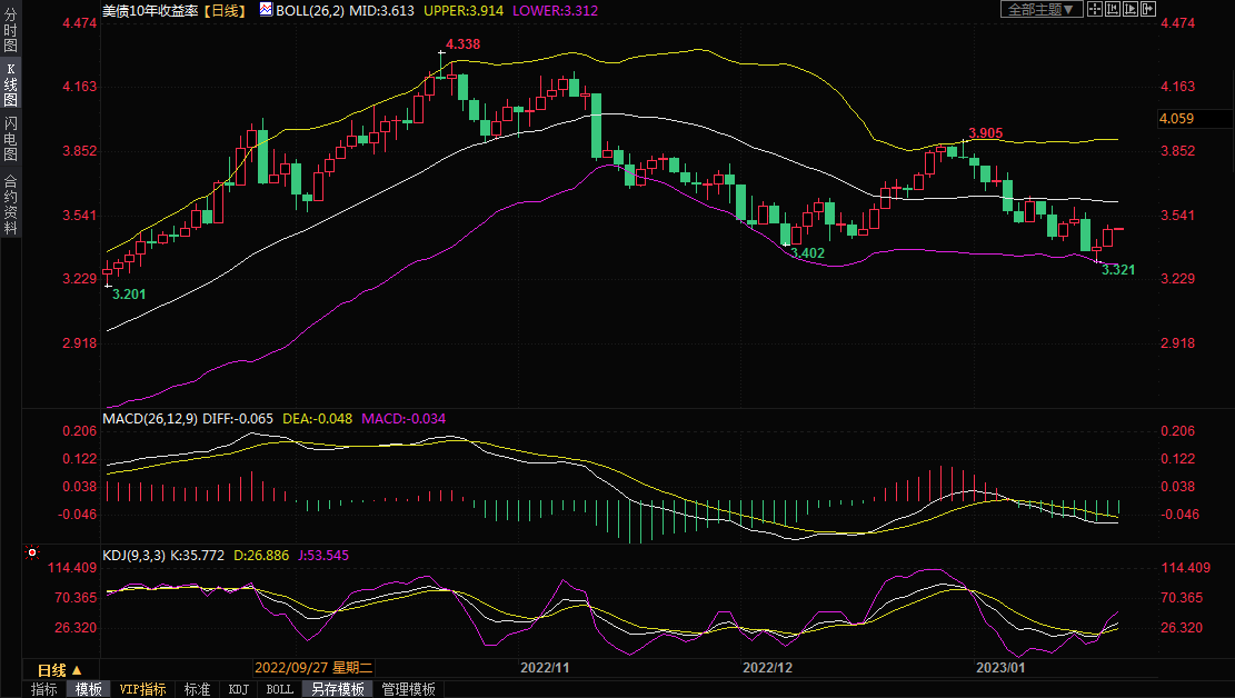 10年期国债收益率上周五尾盘报3.484%,周四跌至3.321%,为9月13日以来最低,略高于其200日移动均线。该收益率已从去年底的3.905%,以及10月21日触及的15年高点4.338%回落。