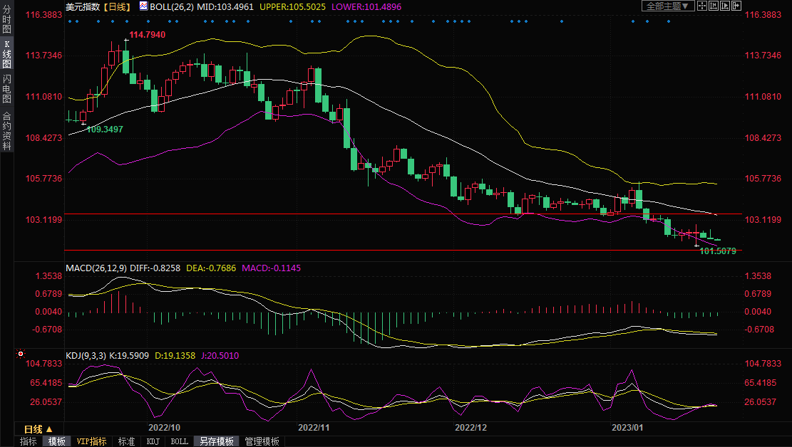 美元指数上周五下跌0.07%,至收报101.985,1月迄今已下跌约1.5%,目前整体仍处于弱势,后市仍有进一步下探风险。在2022年最后三个月,美元下跌近8%,当时投资者开始考虑美联储放慢加息步伐的可能性提高。