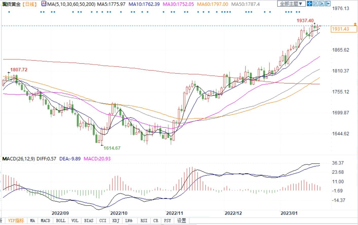 现货黄金日线图
