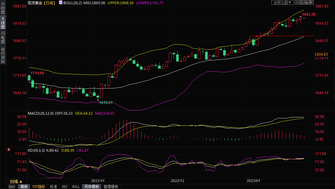 整体来看,美联储下周料将仅加息25个基点的预期和美国经济衰退担忧仍给金价提供支撑,市场普遍关注周四的美国四季度GDP等经济数据和周五的美国12月PCE数据,数据出炉前,金价偏向高位震荡。GDP数据料将显示美国经济增速放缓,PCE数据料将显示美国通胀降温,有望给金价进一步震荡走高提供机会;但技术面显示金价短线上涨动能有所减弱,也需要提防冲高回落或者高位震荡筑顶的可能性。北京时间09:58,